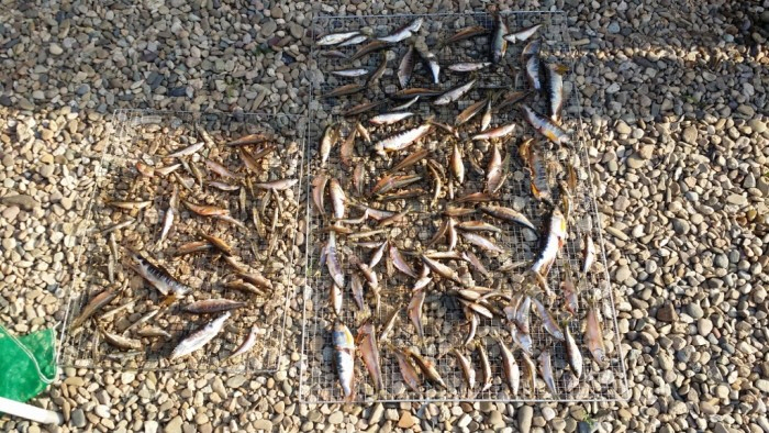 펜션앞 강가에서 낚시로잡은 민물고기들~~